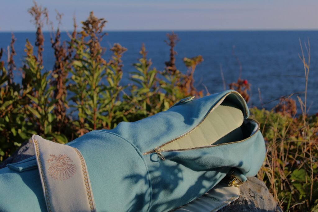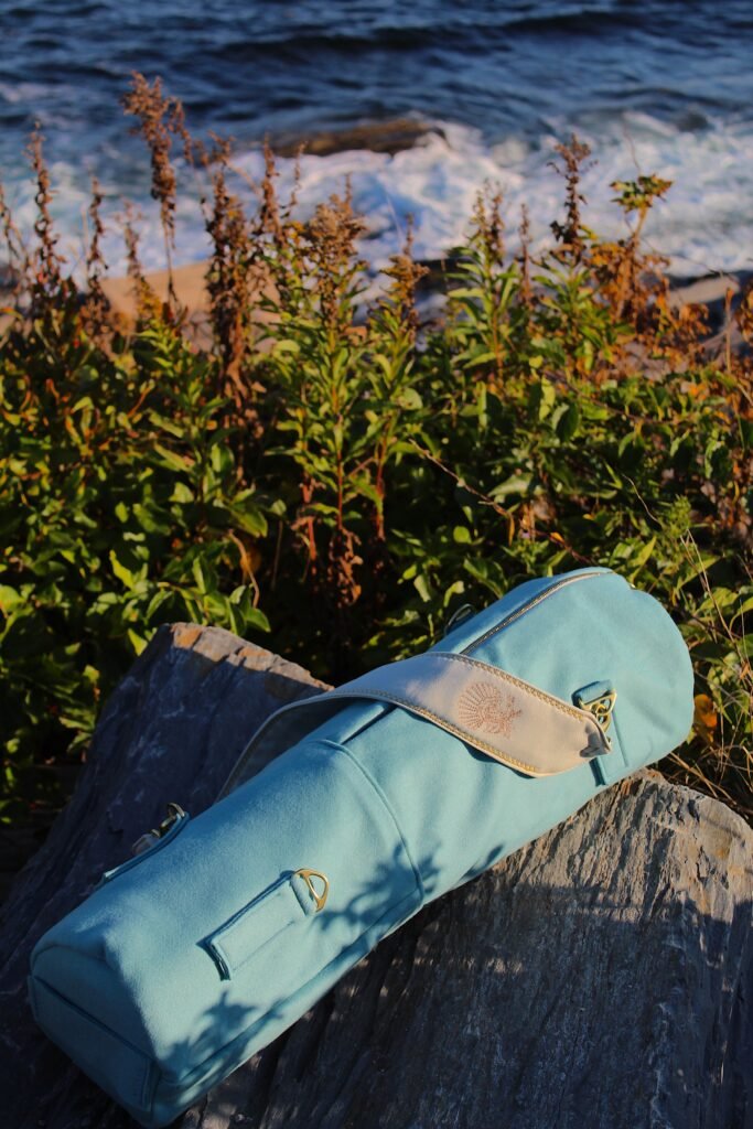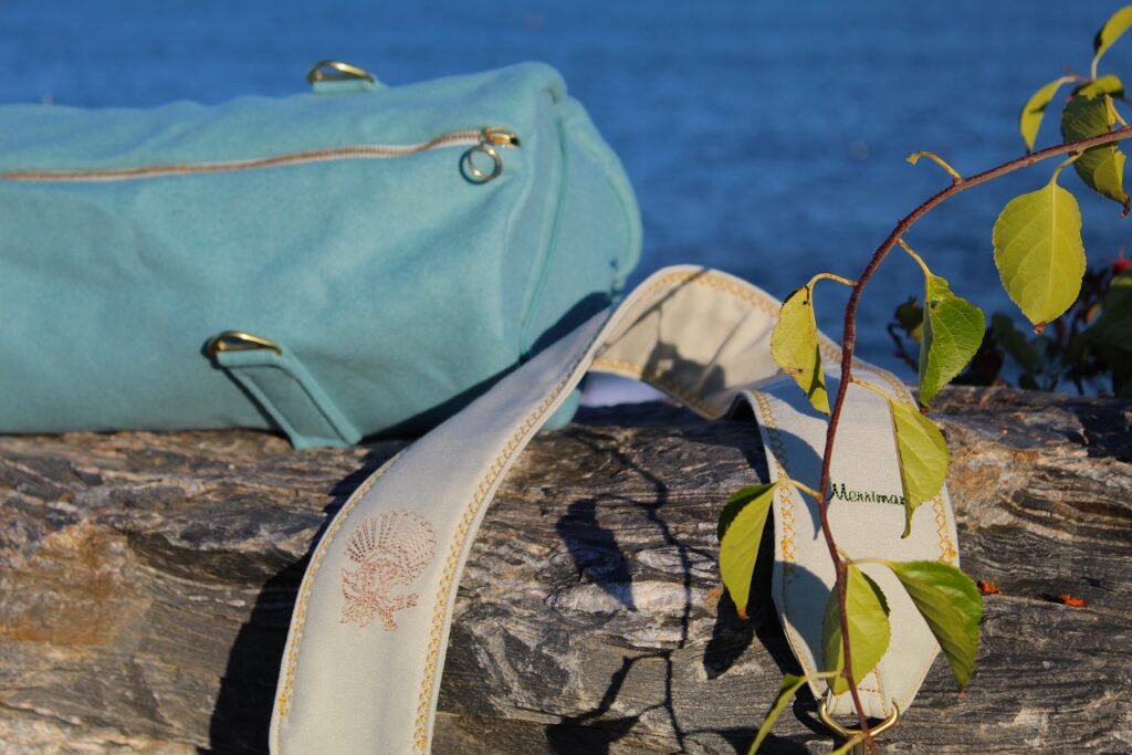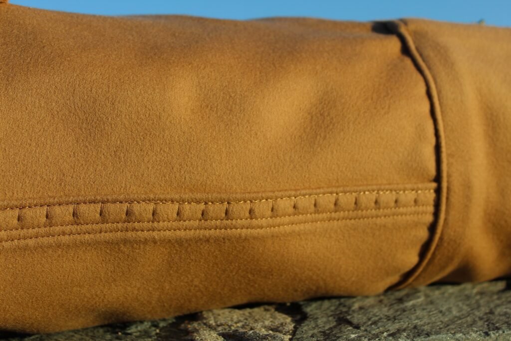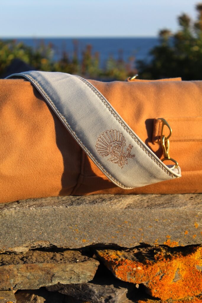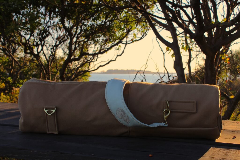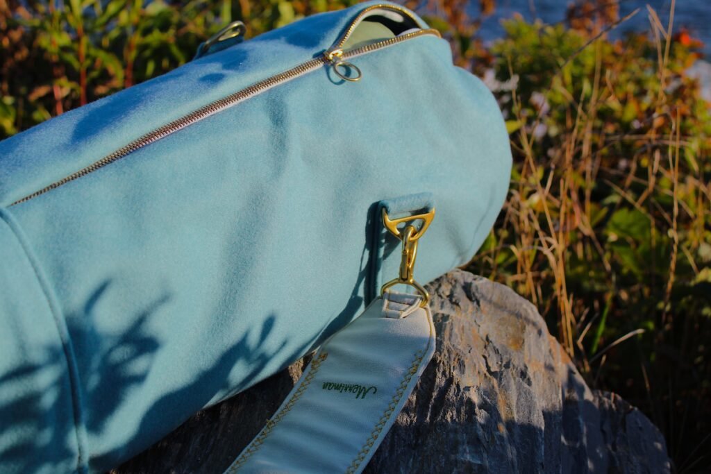 Dumuzi mat bags are made of premium melton wool fabric and natural brass hardware. The detachable straps are made of heavyweight canvas with natural brass lever snaps.